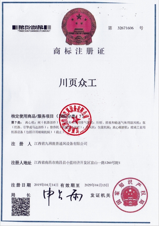 商標注冊證(川頁眾工